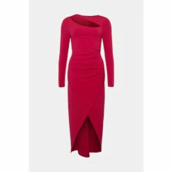 A sleek option for evening plans, this longsleeved maxi dress exudes abstract elegance. Slinky jersey material drapes into a crossover design, revelling a slit on the knee. This daring dress also features a cut out detail across the chest. Style with strappy heels for a smooth dinner date look. Style: Bodycon DressFabric: ItyLength: MaxiNeckline: CrewSleeve Length: Long SleeveThis garment is part of our READY FOR THE FUTURE rangeIt is made with recycled polyester.Find out more about our material goalsReady For The Future Guidelines