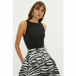 97% polyester 3% elastane. machine wash at 40. Length: 65cm