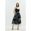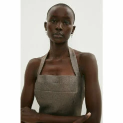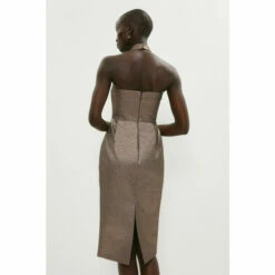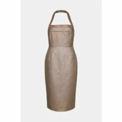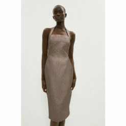 Main: 65% Polyester, 16% Viscose, 13% Metallised Fibre, 6% Elastane. Lining: 100% Polyester. Dry Clean Only. Length 116cm.