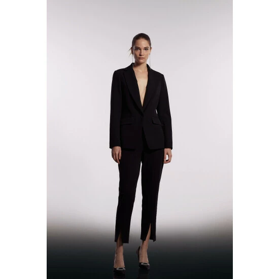 MAIN 89% POLYESTER 11% ELASTANE LINING 100% POLYESTER. DRY CLEAN ONLY. LENGTH 101CM