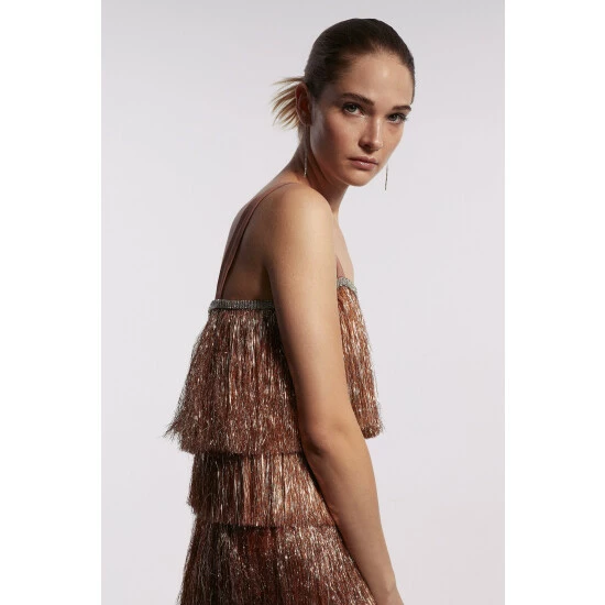 Main: 100% Polyester. Lining: 100% Polyester. Trim: 100% Polyester. Dry Clean Only. Length 86cm.