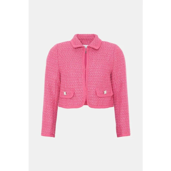 Style: BlazerFabric: TweedLength: CroppedNeckline: CollaredSleeve Length: Long Sleeve