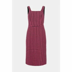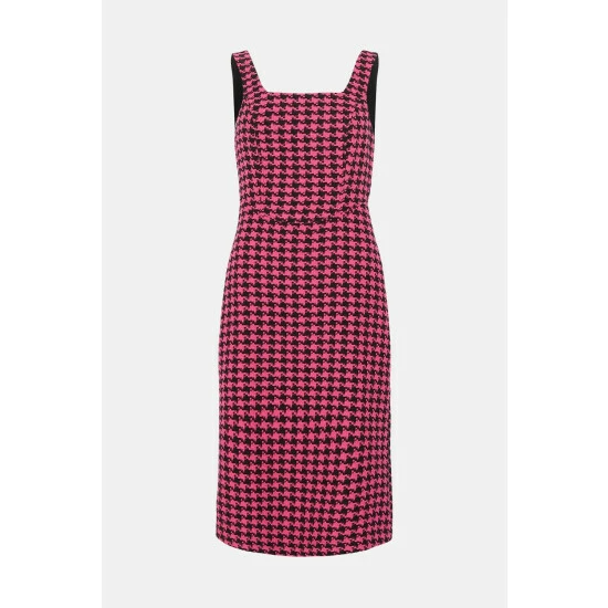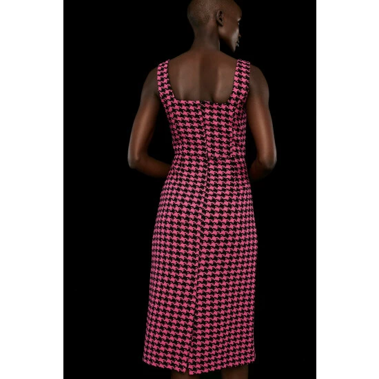 Style: Pencil DressFabric: TweedLength: MidiNeckline: SquareSleeve Length: Sleeveless