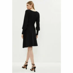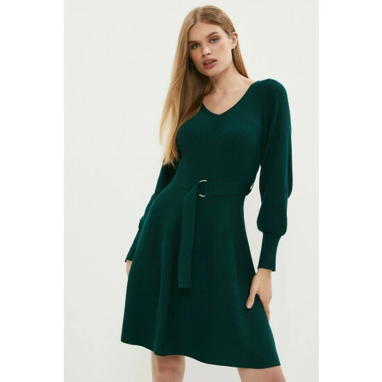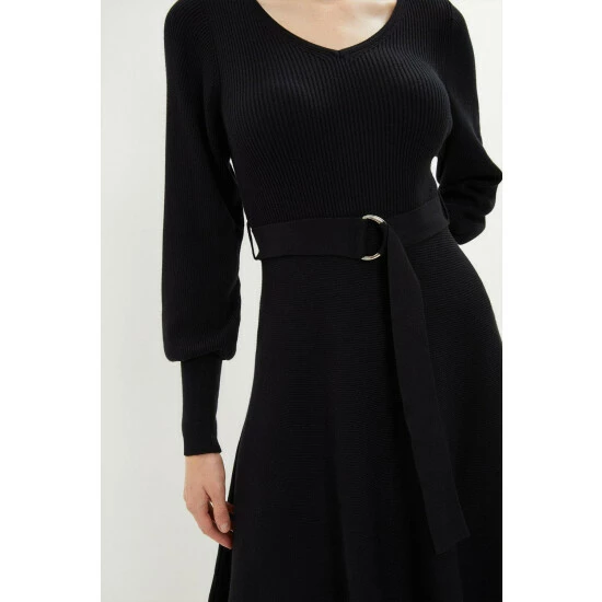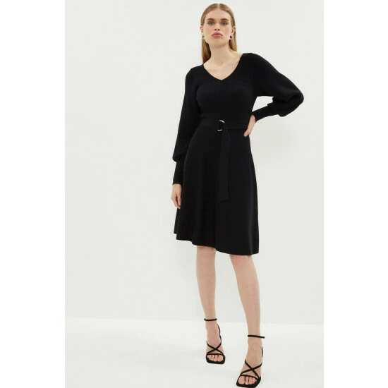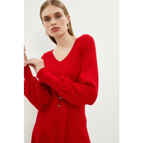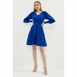 Style: Knitted DressDesign: PlainFabric: KnittedLength: MiniNeckline: V NeckSleeve Length: Long Sleeve